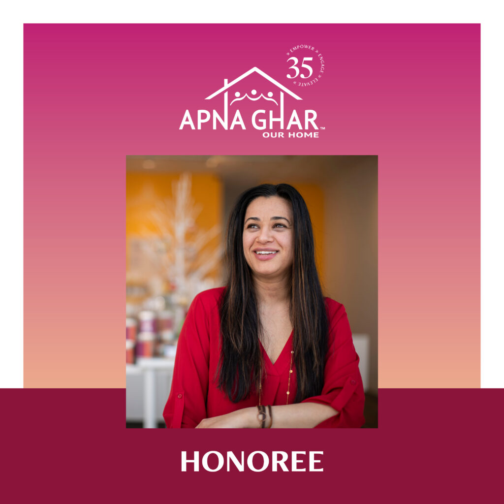 We are proud to recognize Dr. Sonia Oyola, Founder and President of the BeAlright Foundation with Apna Ghar’s Advocacy Award, for her generous support, and unwavering commitment to elevating gender justice. Dr. Oyola exemplifies care and compassion and we are also fortunate to have benefited from her professional expertise, which has helped us shape our programs.