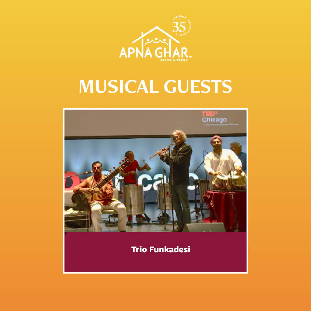 We are excited to announce that Ravi Baichwal, an Emmy Award–winning anchor and reporter with ABC 7 Chicago, and a friend of Apna Ghar’s, will co-host the gala with our very own Rahul Sharma, founder and bandleader of Funkadesi, Chicago’s award‑winning Afro‑Indo‑global music collective.